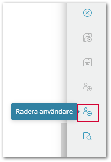 Om kontakten har ett användarkonto så behöver användarkontot raderas innan kontakten kan raderas. Användarkontot raderas genom att klicka på Radera användare i menyn till höger.