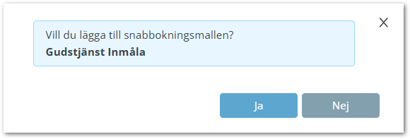 Du får då en fråga om du vill lägga till snabbokningsmallen.