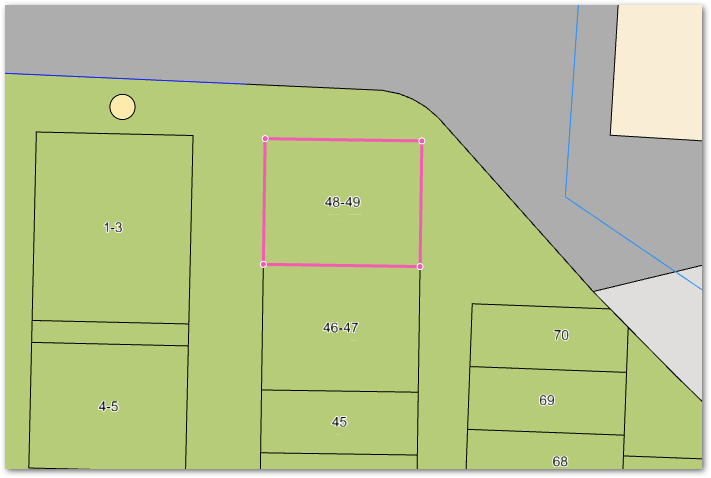 - Glöm inte att numrera gravarna genom att klicka på en så att den blir vald (rosa kontur) och skriv sedan in numret i fältet under Gravyta i den högra sidopanelen. Upprepa sedan för övriga gravar från delningen.