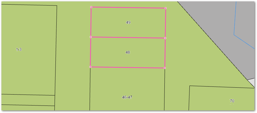 Klicka på gravplatserna som ska slås samman så att de blir valda (rosa kontur). Håll ner SHIFT-tangenten för att kunna markera flera objekt.