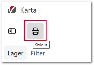 Det finns möjlighet att skriva ut en hel eller delar av en karta. Det görs genom att klicka på Skriv ut, i övre vänstra hörnet.