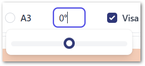 Rotation | Klicka på detta fält för att kunna rotera kartan på utskriften. När du klickar på fältet får du upp ett reglage som du kan använda för att rotera kartan. Alternativt skriver du in ett gradantal, från -180° till 180°, direkt i fältet och klickar ENTER så roteras kartan. ![]() |