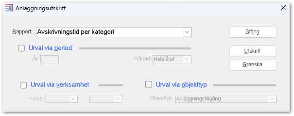 - Anläggningsspecifikation eller Anläggningslista per avskrivningstid