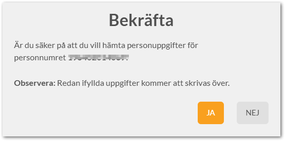 När allt är igång kommer automatiskt en grön bock lysa upp vid ett korrekt inskrivet personnummer. Möjligheten finns då att hämta informationen från Kommunikatorn genom att man klickar på ikonen till höger om personnumret.