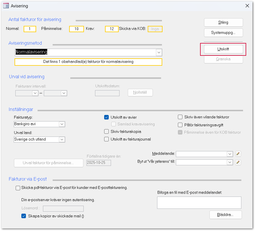Klicka på Avisera.