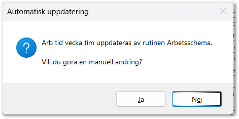 Om anställda har fått ändrat arbetstidsmått från 38,25 tim/vecka till 40 tim/vecka behöver uppgifter uppdateras i FAS Lön. Detta moment är synnerligen viktigt om en koppling till FAS Tid finns, eftersom det är detta värde som styr hur många timmar som ska schemaläggas.