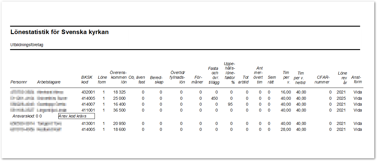 Den årliga insamlingen av löner inom Svenska kyrkan hanteras av Statisticon. De som rapporteras är personer som omfattas av kollektivavtalet AB.