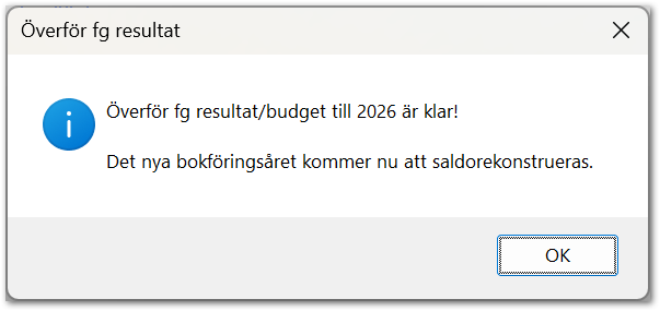När alla bokslutsdispositioner är genomförda och bokslutet för det gamla året är klart ska de utgående balanserna överföras som ingående balanser till det nya året.