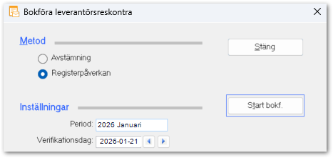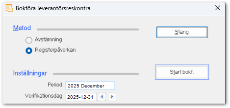 - Bokföring av leverantörsskulden görs i två steg. Först för december 2025 och därefter för januari 2026.