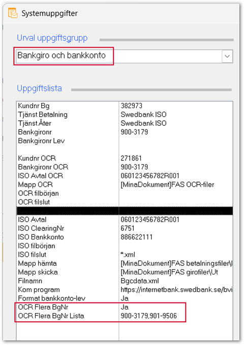 Det är vanligt att församlingar och pastorat använder flera bankgironummer respektive plusgironummer – till exempel ett BG/PG för Reskontra och ett för Kyrkogård. För att undvika att det blir problem vid inläsning av filer i FAS Reskontra har vi lagt till en ny uppgift i Systemuppgifter under Bankgiro och bankkonto respektive Plusgiro. Den nya uppgiften OCR Flera BgNr Lista finns under Bankgiro och bankkonto. Under Plusgiro finns den nya uppgiften OCR Flera PgNr Lista.