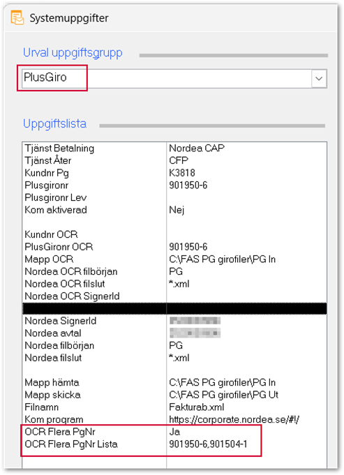 Den befintliga uppgiften OCR Flera BgNr respektive OCR Flera PgNr tillåter att det i samma mapp får förekomma filer med olika bankgironummer respektive plusgironummer. Om detta värde är satt till Ja kommer en fil med ett ogiltigt BG/PG att lämnas kvar i mappen för att vid ett senare tillfälle kunna läsas in av ett annat delsystem eller företag.