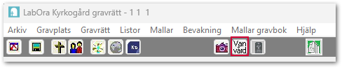 Rutinen för vanvård ligger i ett eget formulär som du kommer till från gravbokens meny eller från ett registerkort över en gravrätt.