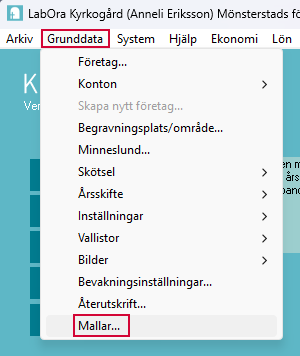 När du ska ändra och redigera i en mall väljer du menyvalet Grunddata > Mallar.