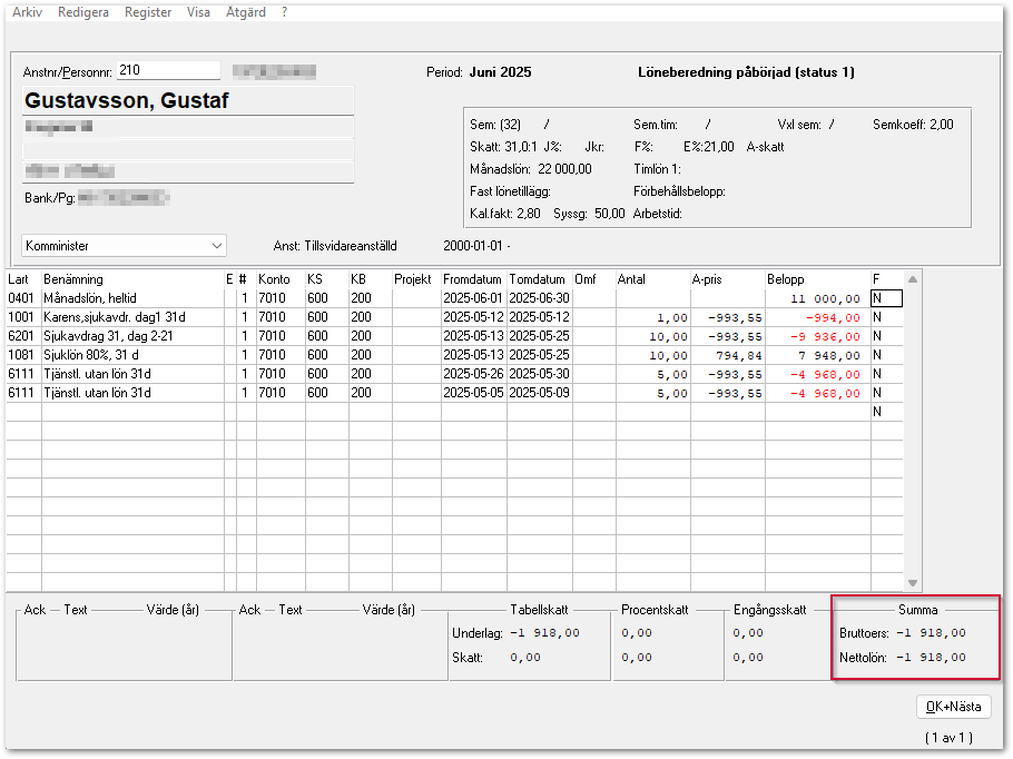 - Se till att den negativa lönen blir 0 kr.