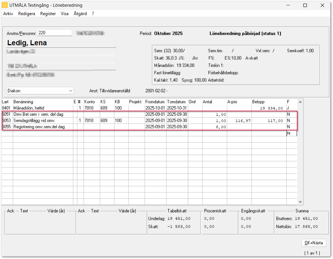 - Börja med att lägga in löneart 5051 det genererar löneart 5053 och 5055.
