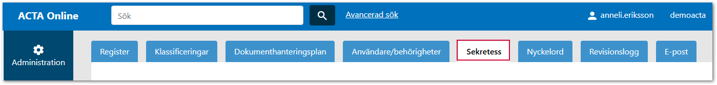 ACTA Online är försett med en lista på sekretessparagrafer som gäller inom Svenska kyrkan enligt KO kap 54.