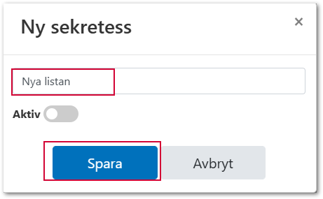 - En lista som varit använd i systemet kan inte tas bort. Om den inte längre ska användas kan den göras inaktiv med reglaget.